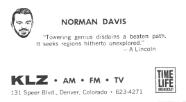 The KLZ job lasted two years and would have been longer except for a trip to the Montreal World's Fair in 1967. Norman and his family had planned the trip for months, arranged for Press passes, hotel, transportation, etc. But about a week before the scheduled trip, KLZ Manager Lee Fondren, noticing that morning man Don Roberts was also taking a vacation then, decided he wanted Norman to fill in on the morning show until Roberts returned. He asked Norman to cancel his plans and cover the morning show for two weeks. Not remembering where his bread was buttered, Norman insisted on going ahead with his World's Fair plans. When he got back from the trip, he was fired.