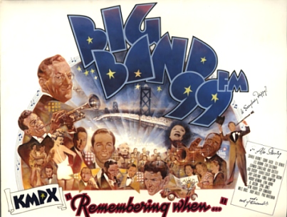 KMPX did well with it's big band format until the nemesis of creative radio, Bill Drake, stuck his red Georgia nose into it. Drake, then partnered with Gene Chenault, bought KMPX in 1983 or 1984. He immediately started cutting out all the interesting parts of the format, just as he had at KYA 20 years earlier. Out went the old comedy carts, most made from old 78's or live radio shows. Out went the jazz, out went the historical elements--the old radio shows. Drake replaced them with syrupy ballads from the 50's and '60s, and cut out any big band tracks that weren't genuine hits.